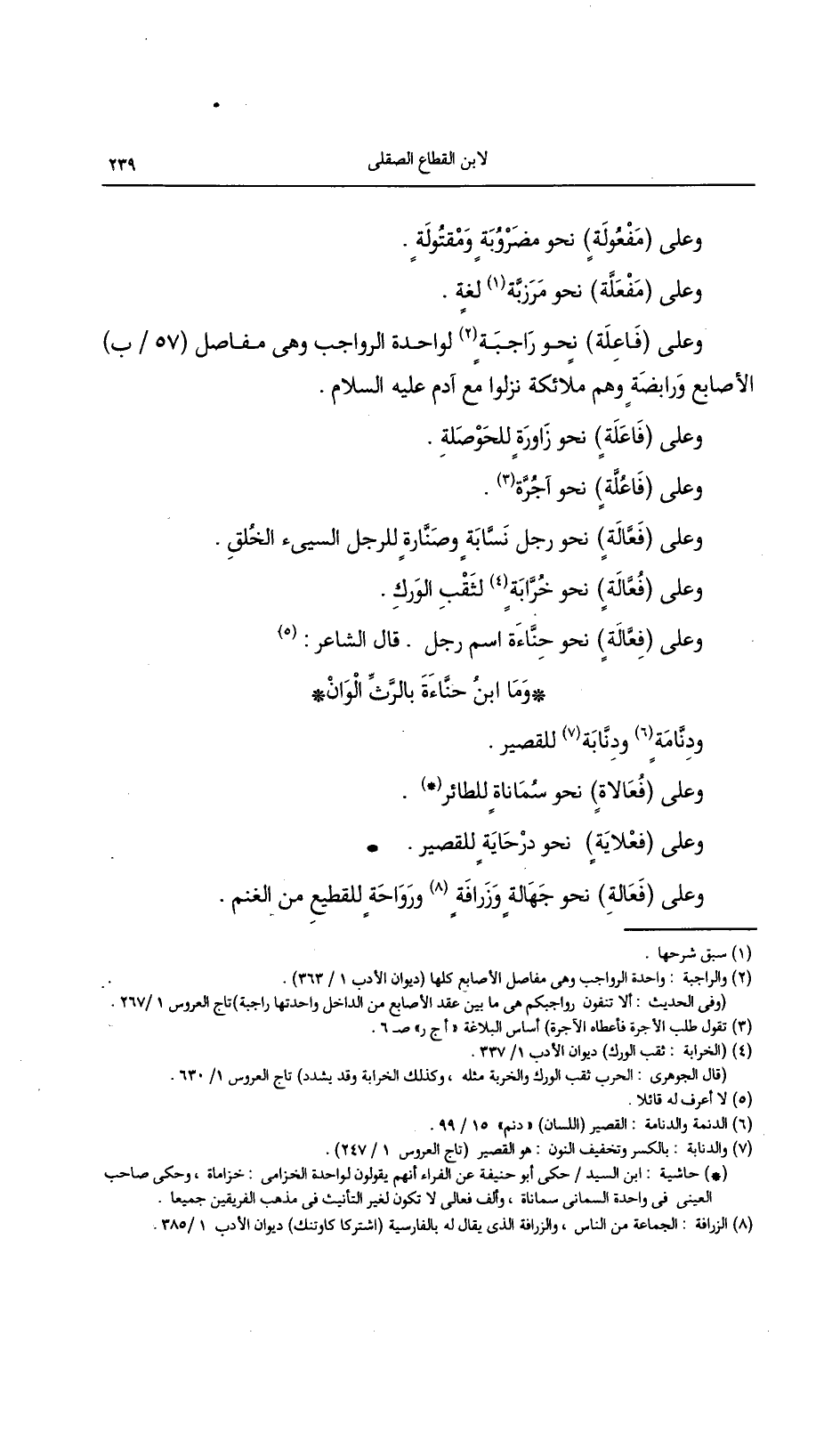 وعلى (فاعلة) نحو راجبة لواحد الرواجب وهي مفاصل (57/ب) الأصابع ورابضة وهم ملائكة نزلوا مع آدم عليه السلام.