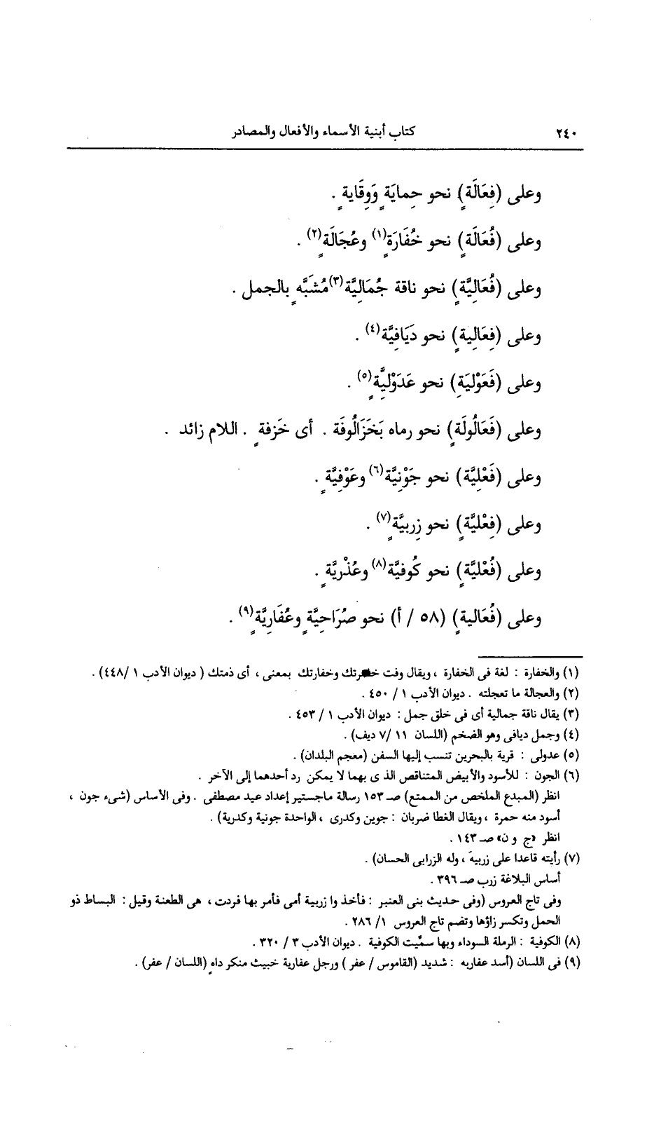وعلى (فعالية) (58/أ) نحو صراحية وعفارية.