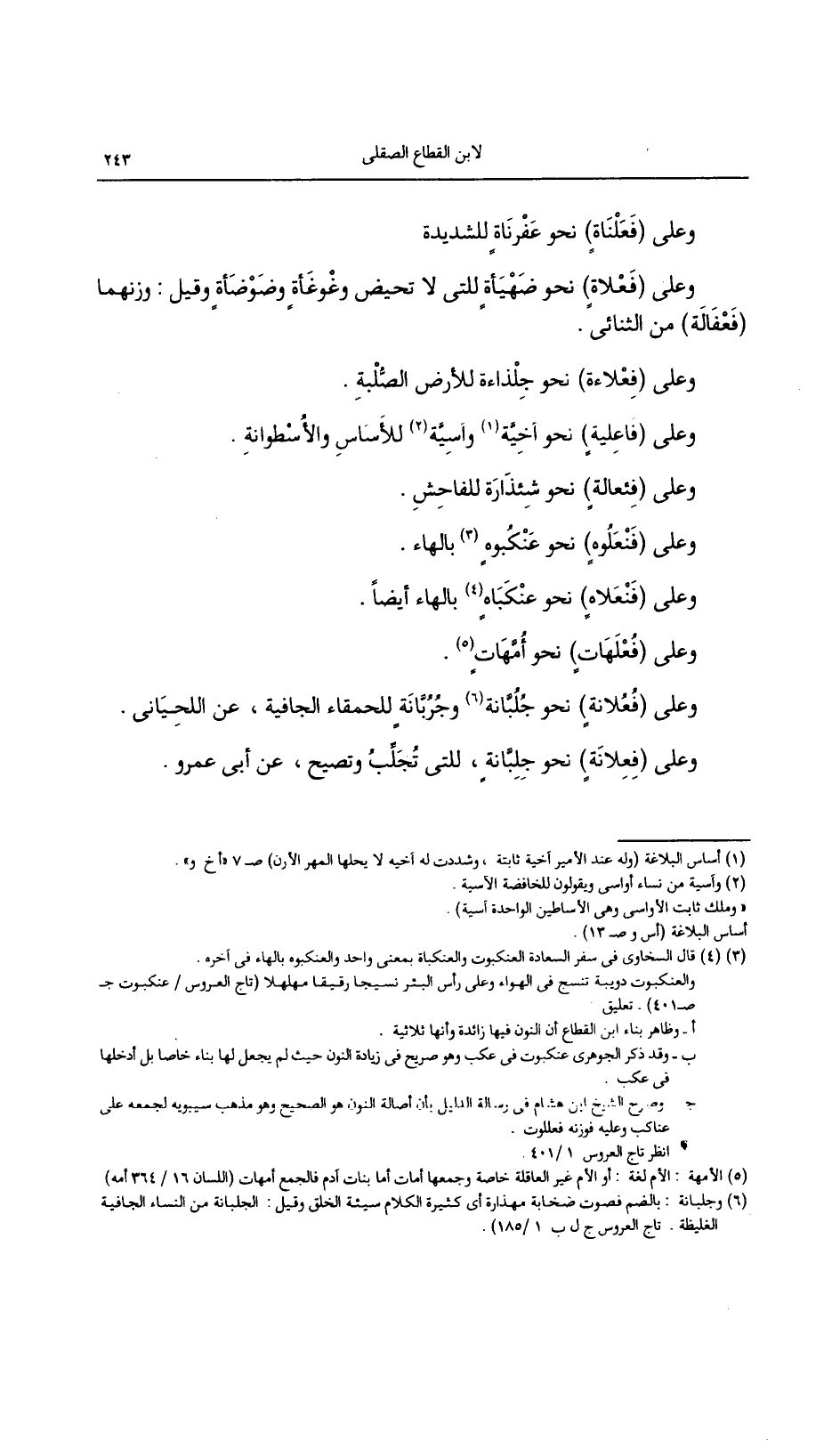 وعلى (فعلانة) نحو جلبانة، للتى تجلب وتصيح، عن أبي عمرو.