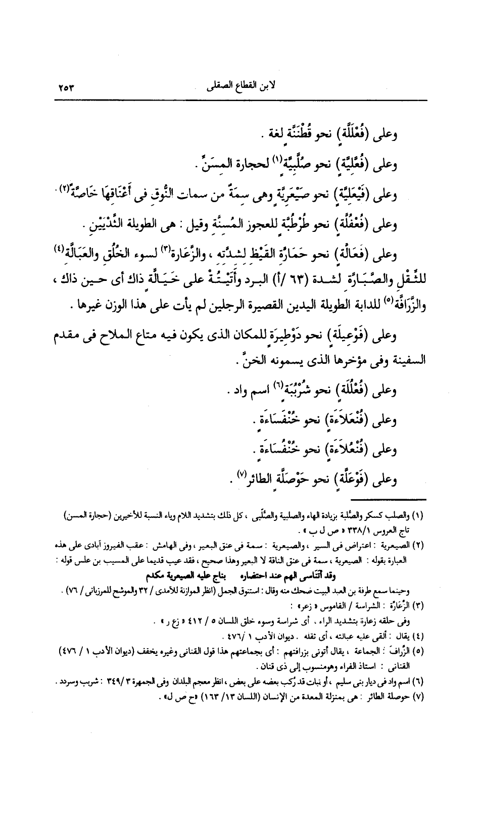 وعلى (فيعلية) نحو صيعرية وهي سمة من سمات النوق فى أعناقها خاصة.