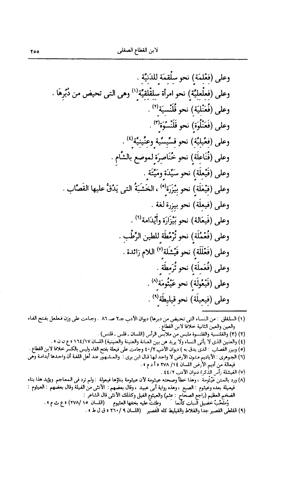 وعلى (فعلعلية) نحو امرأة سلقلقية وهى التى تحيض من دبرها.