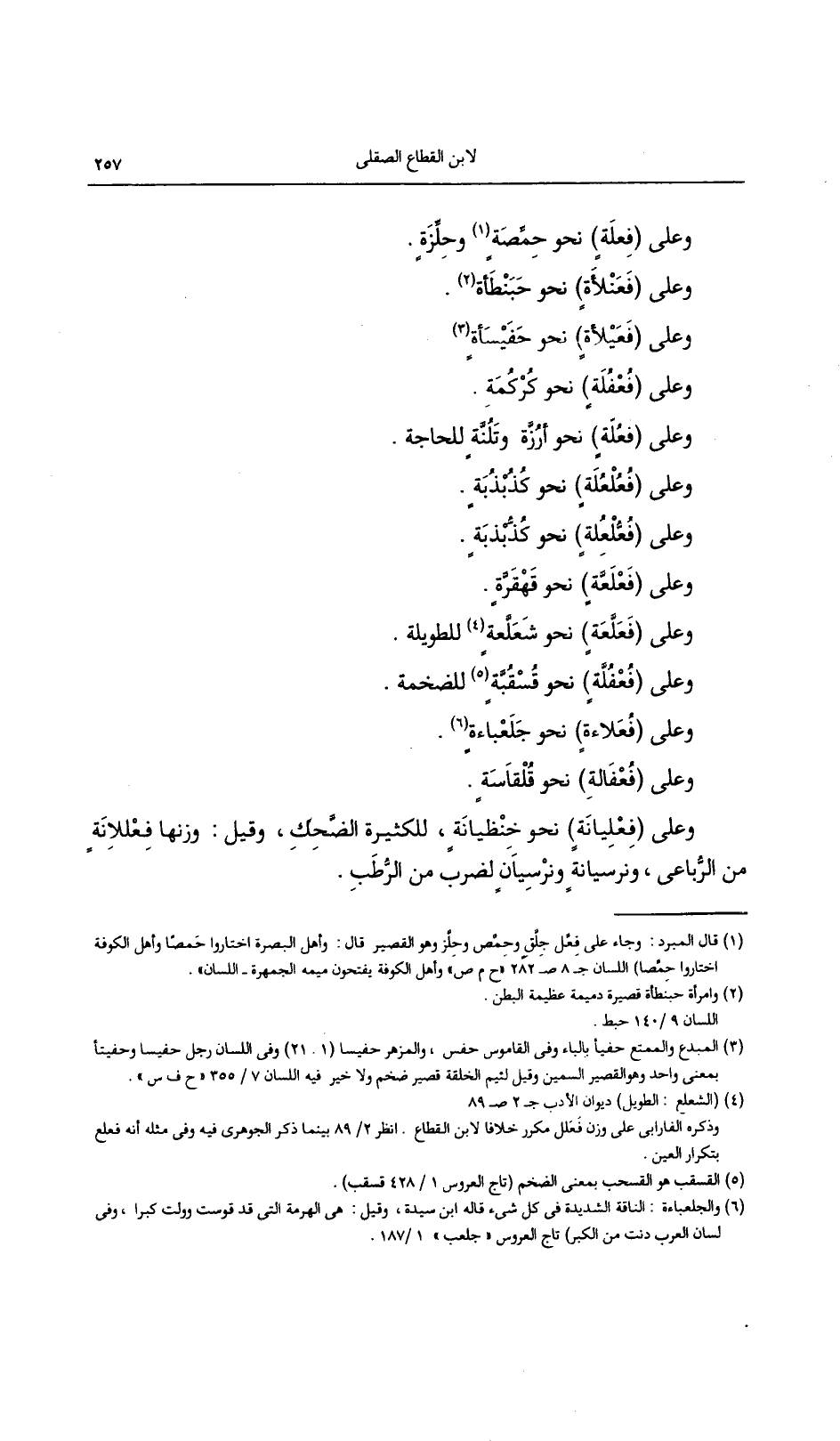 وعلى (فعلعة) نحو شعلعة للطويلة.
