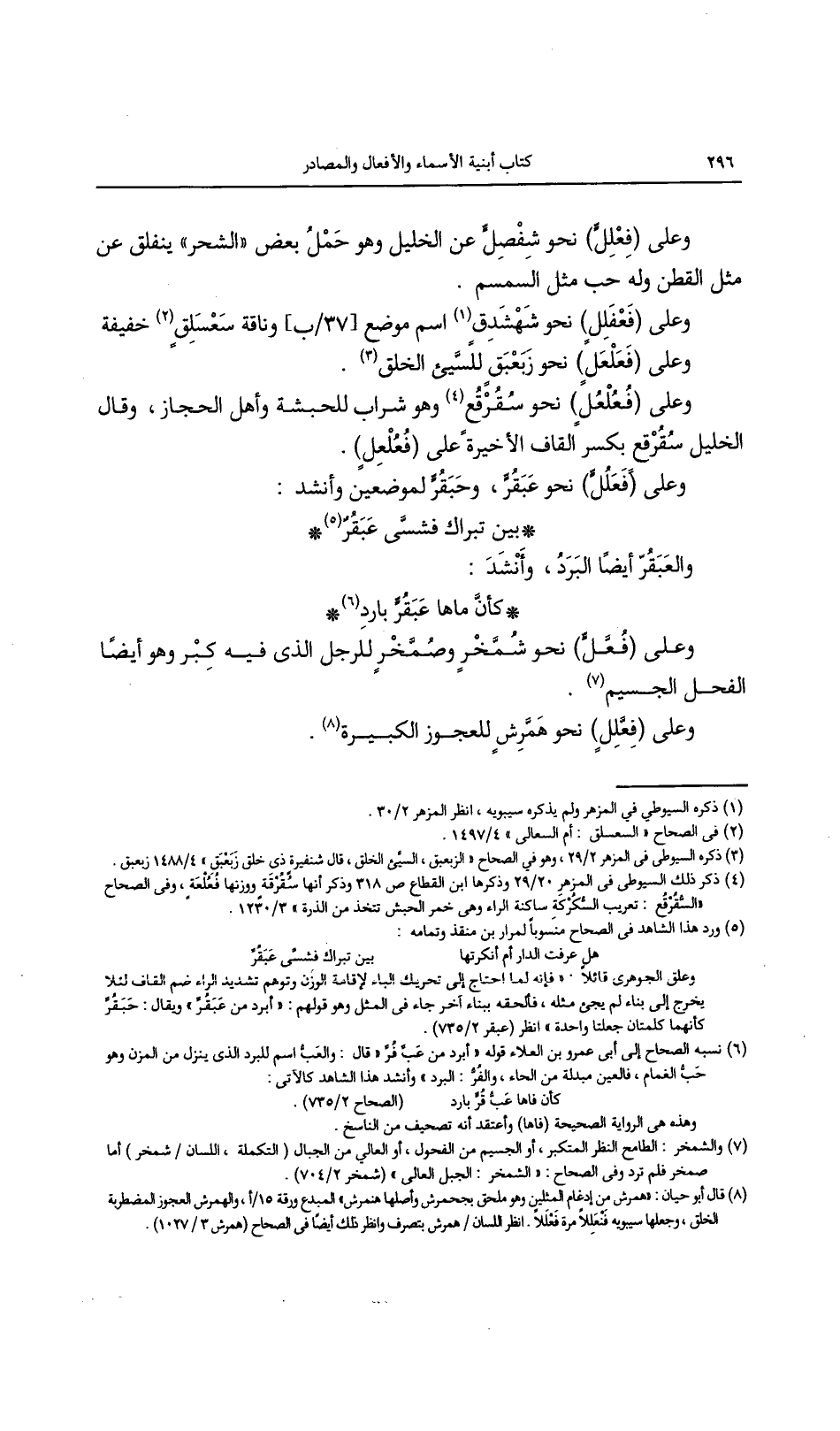 وعلى (فَعلعل) نحو سقرقع وهو شراب للحبشة وأهل الحجاز، وقال الخليل سقرقع بكسر القاف الأخيرة على (فعلعِل).