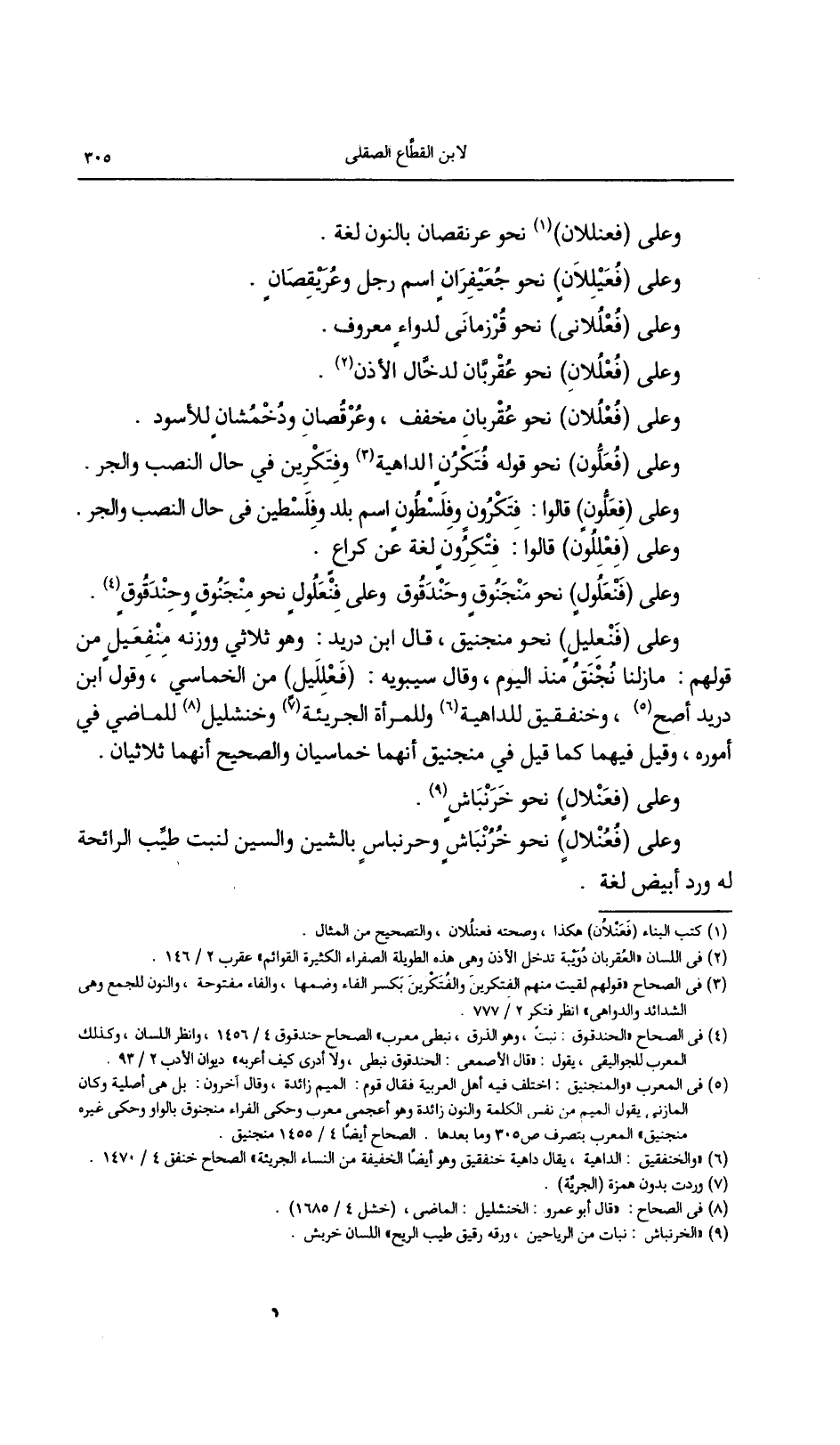وعلى (فنعلولٍ) نحو منجنوقٍ وحندقوق وعلى فنعلولٍ نحو منجنوقٍ وحندقوقٍ.