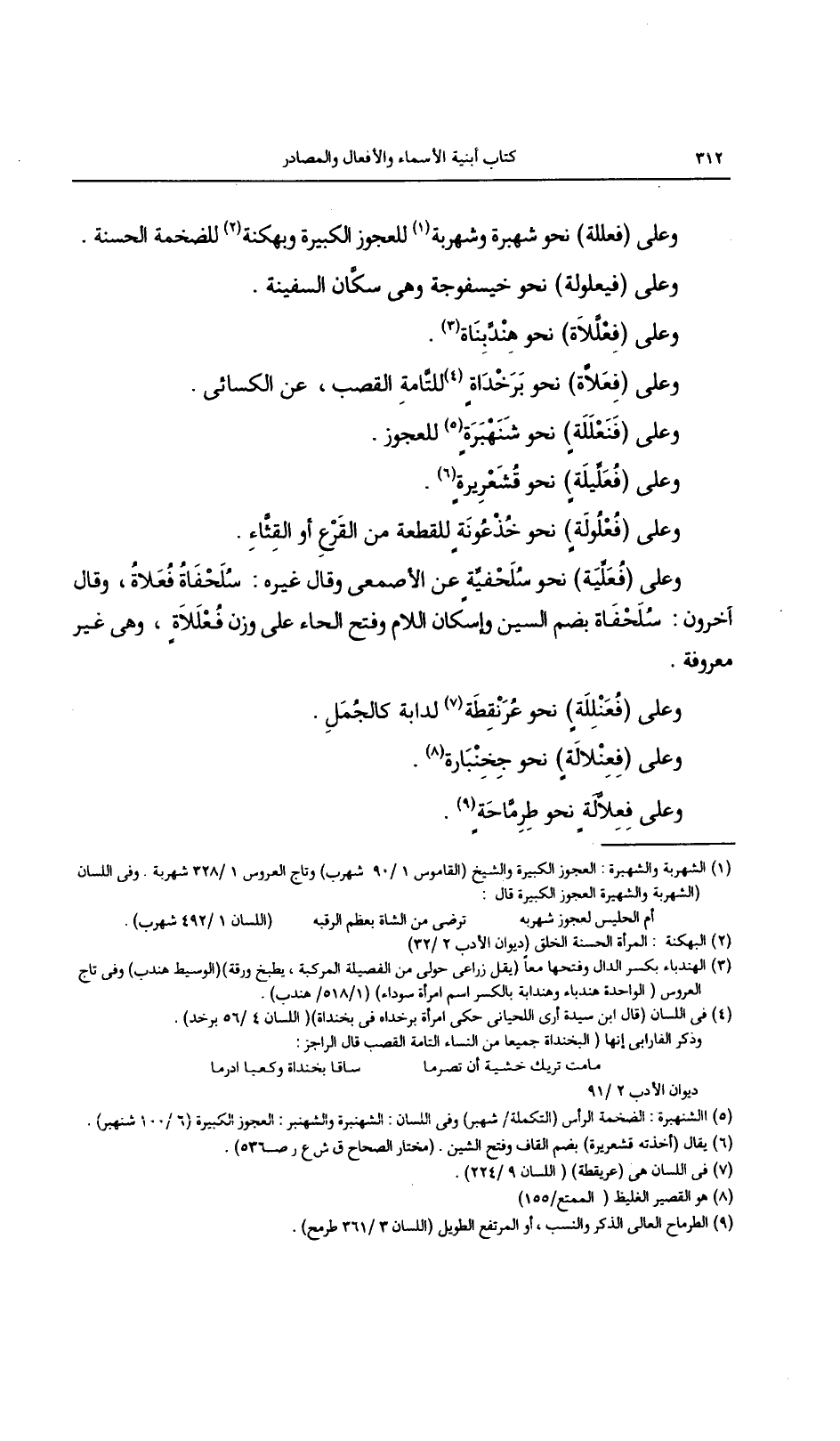 وعلى (فعللة) نحو شهبرة وشهربة للعجوز الكبيرة وبهكنة للضخمة الحسنة.