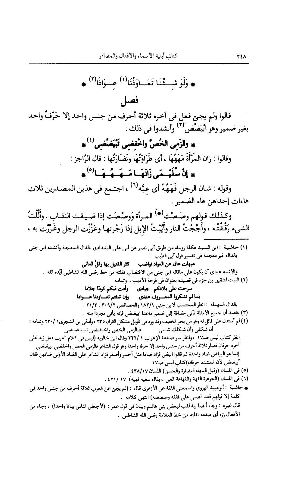 وقوله: شان الرجل فههه أي عِيَّه، اجتمع في هذين المصدرين ثلاث هاءات إحداهن هاء الضمير.