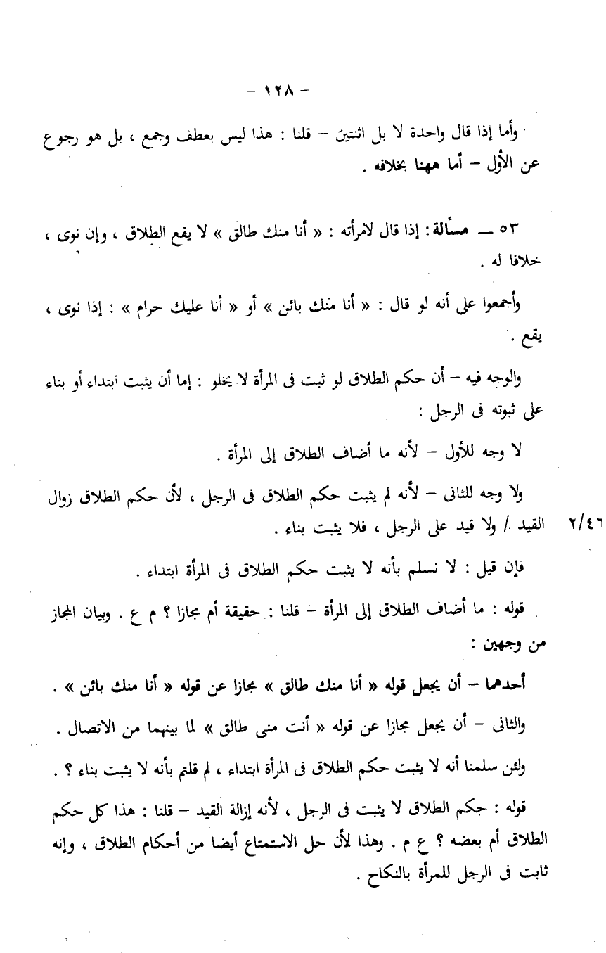 ولا وجه للثاني- لأنه لم يثبت حكم الطلاق في الرجل، لأنه حكم الطلاق زوال القيد/ ولا قيد على الرجل، فلا يثبت بناء.