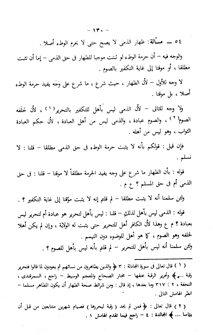 54 - مسألة: ظهار الدمى لا يصح حتى لا يحرم الوطء أصلًا.
