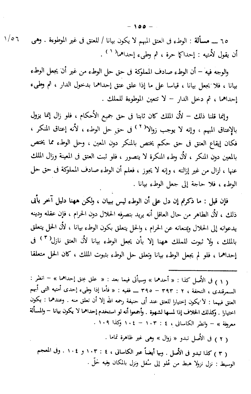 فإن قيل: ما ذكرتم إن دل على أن الوطء ليس ببيان، ولكن ههنا دليل آخر بأبي ذلك، لأن الظاهر من حال العاقل أنه يريد بتصرفه الحلال دون الحرام، فإن عقله ودينه يدعوانه إلى الحلال ويمنعانه عن الحرام، والحل يتعلق بكون الوطء بيانًا، لأن الحل يتعلق بالملك، ولا ثبوت للملك ههنا إلا بأن يجعل الوطء بيانًا لأن العتق نازل في إحداهما، فلو لم يجعل الوطء بيانًا وتعلق حل الوطء بثبوت الملك، كان الحل متعلقًا