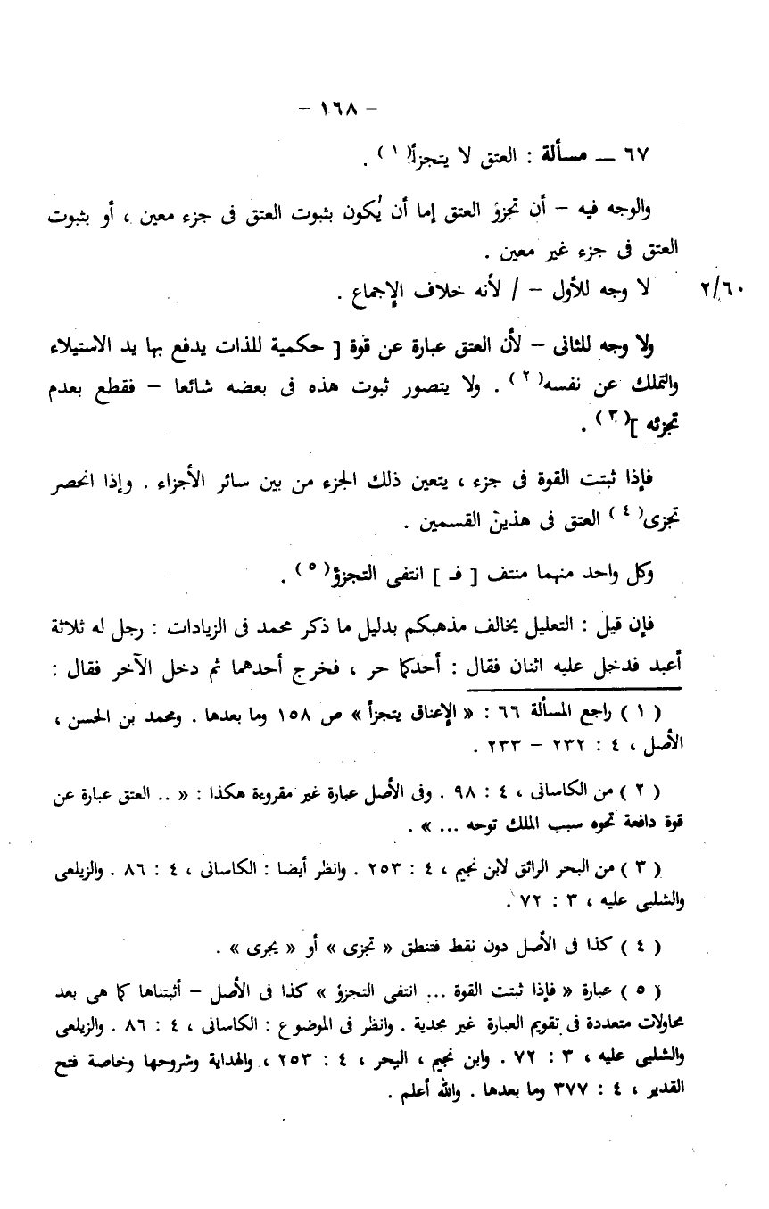 67 - مسألة: العتق لا يتجزأ.