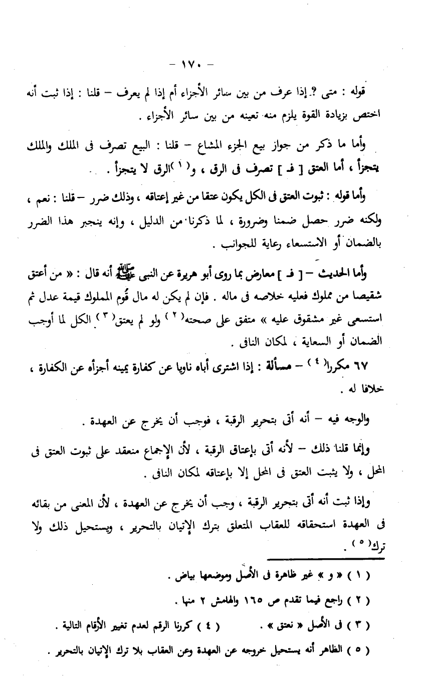 67 - مكررًا- مسألة: إذا اشترى أباه ناويًا عن كفارة يمينه أجزأه عن الكفارة، خلافًا له.