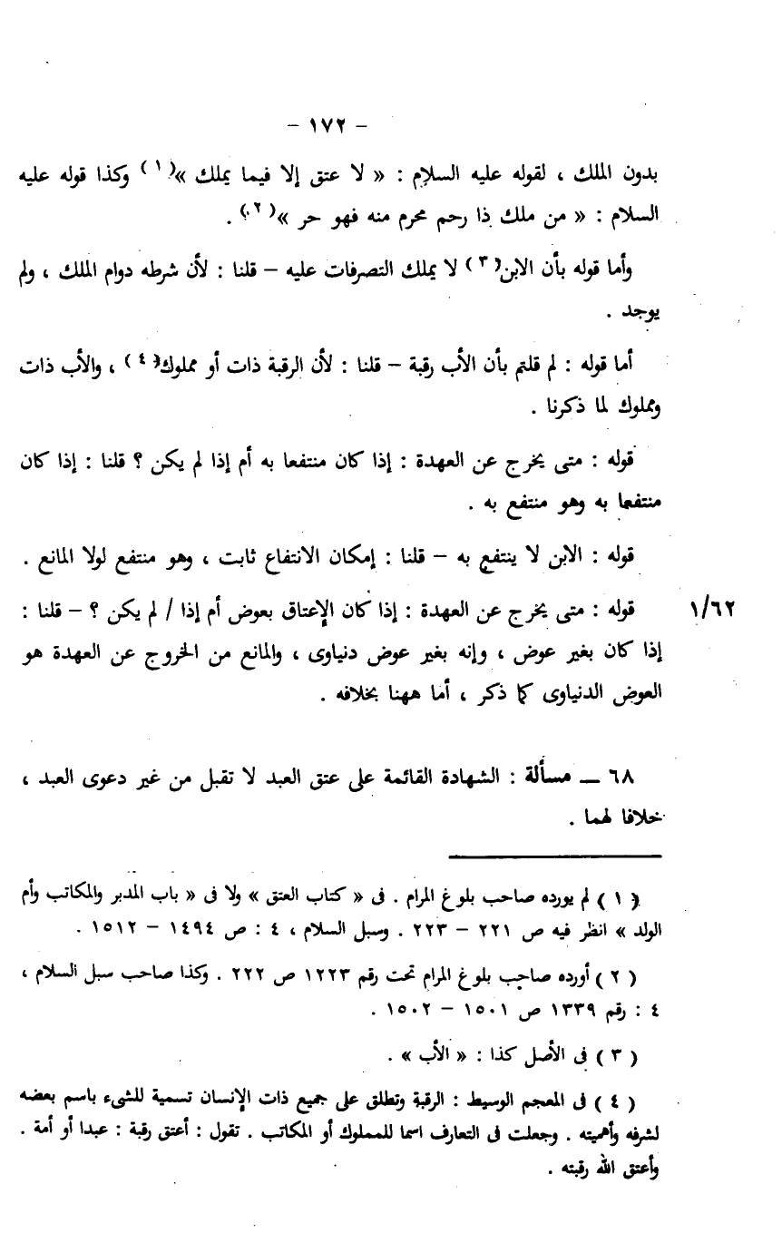 68 - مسألة: الشهادة القائمة على عتق العبد لا تقبل من غير دعوى العبد، خلافًا لهما.