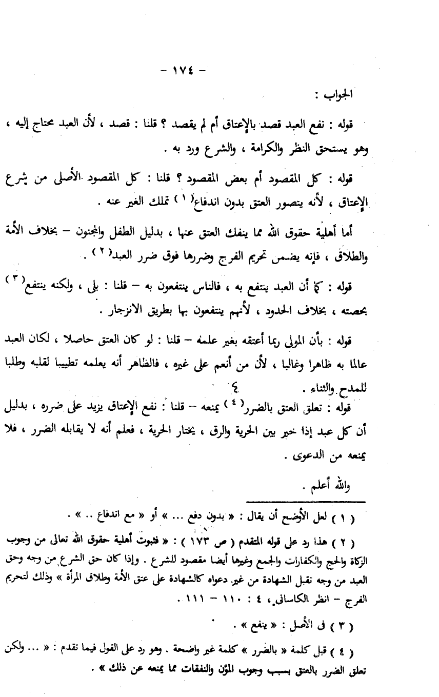 قوله: بأن المولى ربما أعتقه بغير علمه- قلنا: لو كان العتق حاصلًا، لكان العبد عالمًا به ظاهرًا وغالبًا، لأن من أنعم على غيره، فالظاهر أنه يعلمه تطييبًا لقلبه وطلبًا للمدح والثناء.