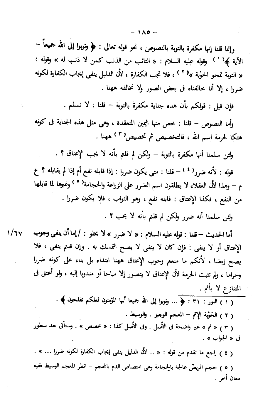 فإن قيل: قولكم بأن هذه جناية مكفرة بالتوبة- قلنا: لا نسلم.