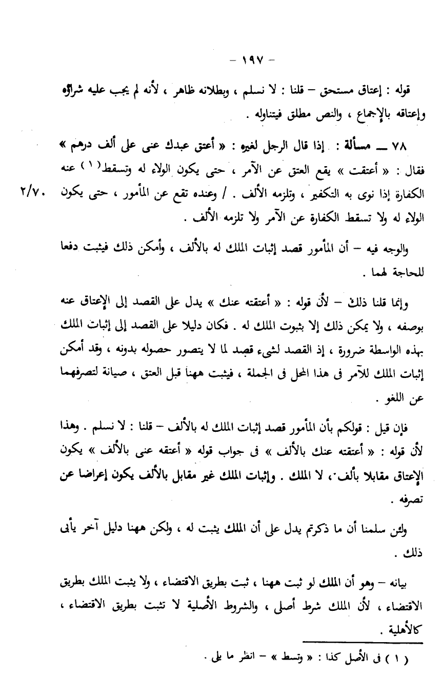 فإن قيل: قولكم بأن المأمور قصد إثبات الملك له بالألف- قلنا: لا نسلم. وهذا لأن قوله: "أعتقته عنك بالألف" في جواب قوله "أعتقه عني بالألف" يكون الإعتاق مقابلًا بألف، لا الملك. وإثبات الملك غير مقابل بالألف يكون إعراضًا عن تصرفه.