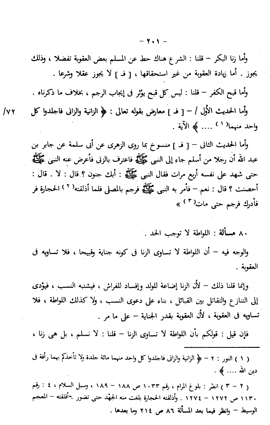 فإن قيل: قولكم بأن اللواطة لا تساوي الزنا - قلنا: لا نسلم، بل هي زنا،