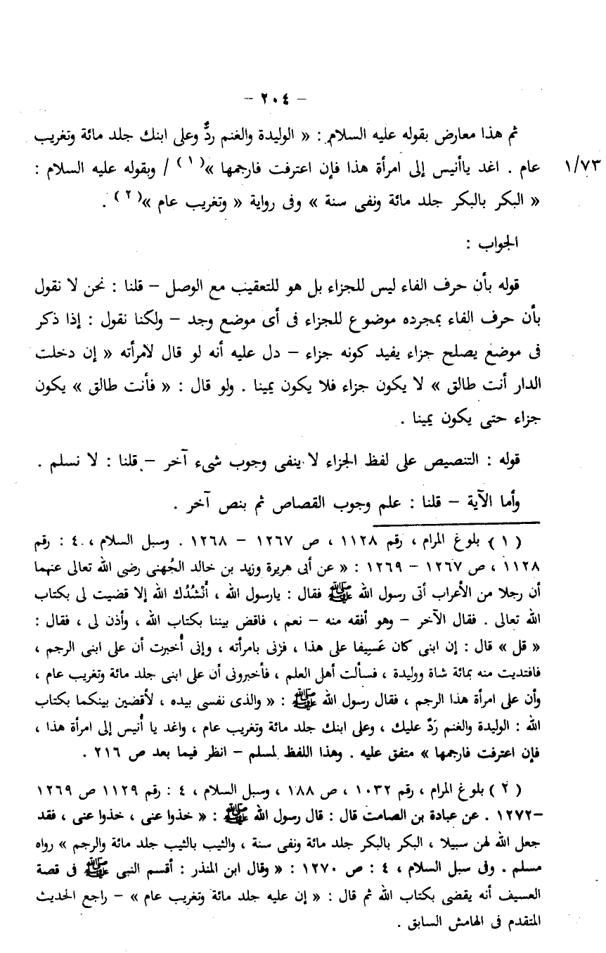 ثم هذا معارض بقوله عليه السلام: "الوليدة والغنم ردٌّ وعلى ابنك جلد مائة وتغريب عام. اغد يا أنيس إلى امرأة هذا فإن اعترفت فارجمها" وبقوله عليه السلام: "البكر بالبكر جلد مائة ونفي سنة" وفي رواية "وتغريب عام".