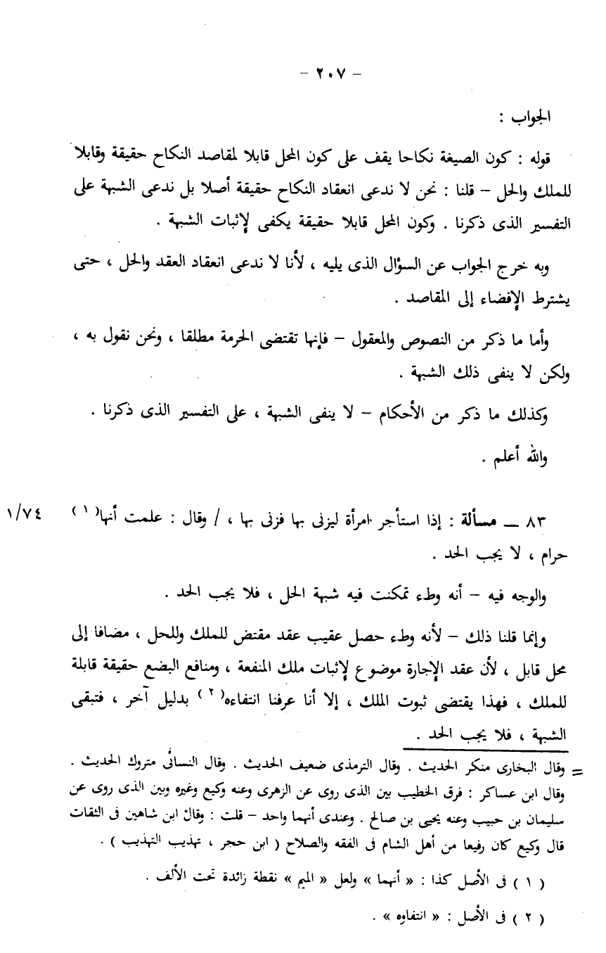 قوله: كون الصيغة نكاحا يقف على كون المحل قابلا لمقاصد النكاح حقيقة وقابلا للملك والحل - قلنا: نحن لا ندعي انعقاد النكاح حقيقة أصلا بل ندعي الشبهة على التفسير الذي ذكرنا. وكون المحل قابلا حقيقة يكفي لإثبات الشبهة.