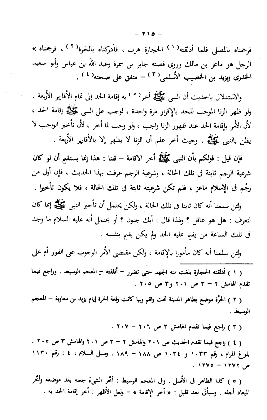 ولئن سلمنا أنه كان ثابتا في تلك الحالة، ولكن يحتمل أن تأخير النبي صلى الله عليه وسلم إنما كان لتعرف: هل هو عاقل؟ ولهذا قال: أبك جنون؟ أو يحتمل أنه عليه السلام ما وجد في تلك الساعة من يقيم عليه الحد ولم يكن يقيم بنفسه.