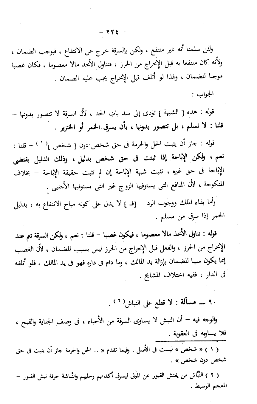 قوله: هذه [الشبهة] تؤدي إلى سد باب الحد، لأن السرقة لا تتصور بدونها - قلنا: لا نسلم، بل تتصور بدونها، بأن يسرق الخمر أو الخنزير.