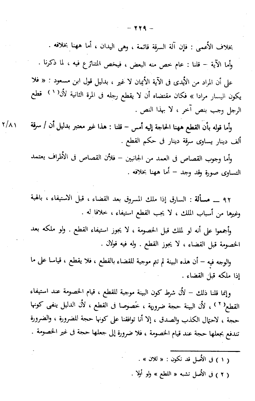 92 - مسألة: السارق إذا ملك المسروق بعد القضاء، قبل الاستيفاء، بالهبة وغيرها من أسباب الملك، لا يجب القطع استيفاء، خلافا له.