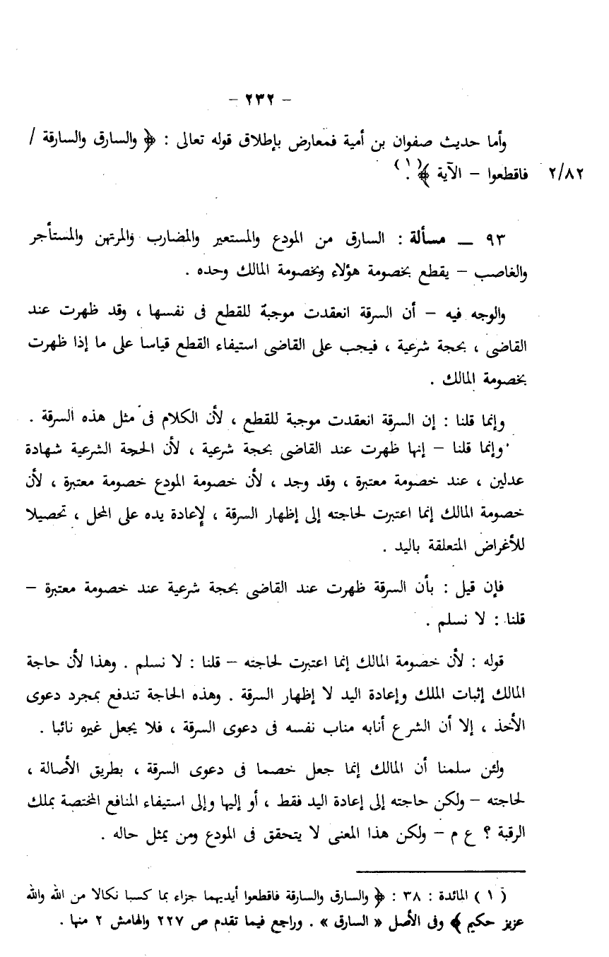ولئن سلمنا أن المالك إنما جعل خصما في دعوى السرقة، بطريق الأصالة، لحاجته - ولكن حاجته إلى إعادة اليد فقط، أو إليها وإلى استيفاء المنافع المختصة بملك الرقبة؟ ع م - ولكن هذا المعنى لا يتحقق في المودع ومن يمثل حاله.