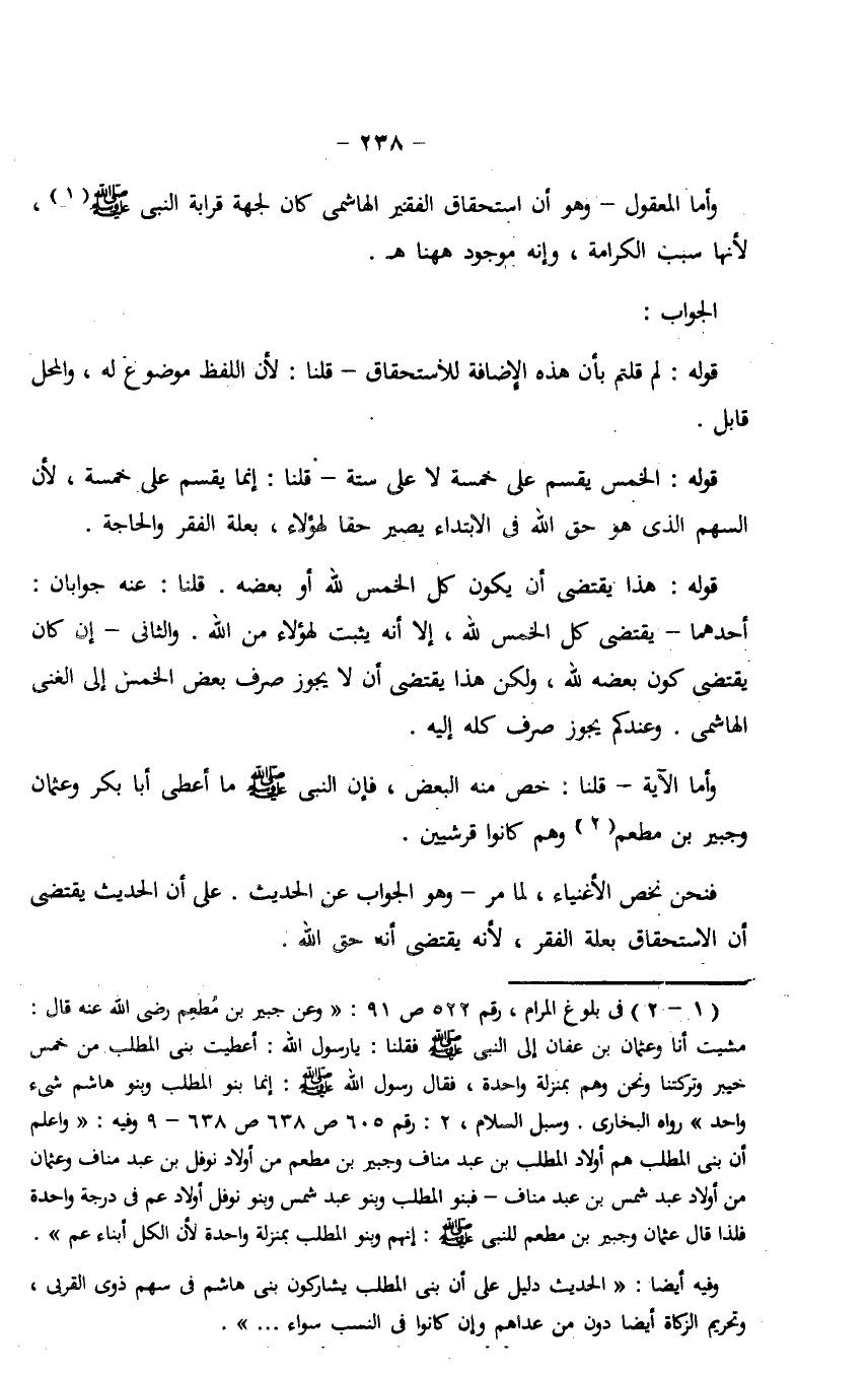 قوله: هذا يقتضي أن يكون كل الخمس لله أو بعضه. قلنا: عنه جوابان: أحدهما - يقتضي كل الخمس لله، إلا أنه يثبت لهؤلاء من الله. والثاني- إن كان يقتضي كون بعضه لله، ولكن هذا يقتضي أن لا يجوز صرف بعض الخمس إلى الغني الهامشي. وعندكم يجوز صرف كله إليه.