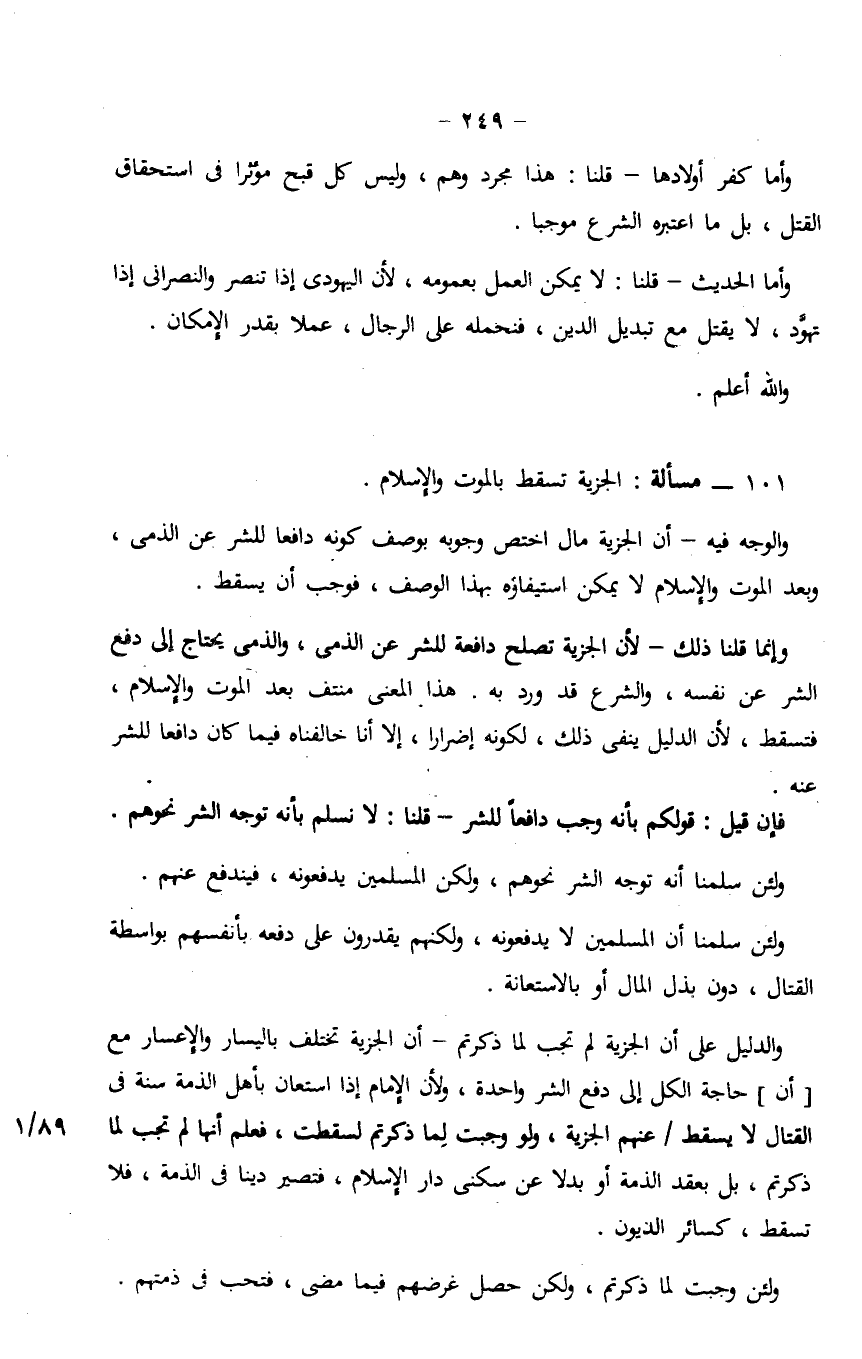 101 - مسألة: الجزية تسقط بالموت والإسلام.