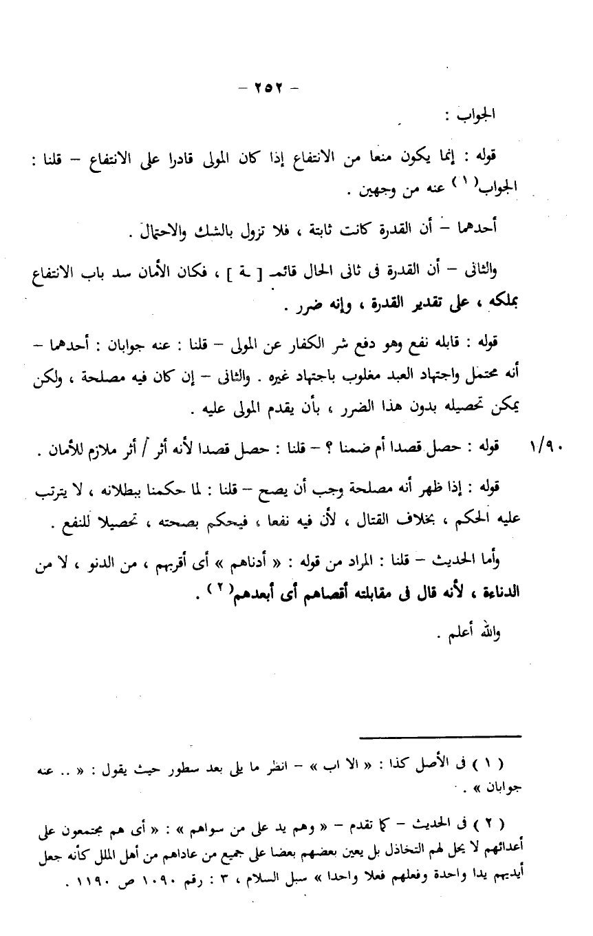 قوله: قابله نفع وهو دفع شر الكفار عن المولى - قلنا: عنه جوابان: أحدهما - أنه محتمل واجتهاد العبد مغلوب باجتهاد غيره. والثاني - إن كان فيه مصلحة، ولكن يمكن تحصيله بدون هذا الضرر، بأن يقدم المولى عليه.