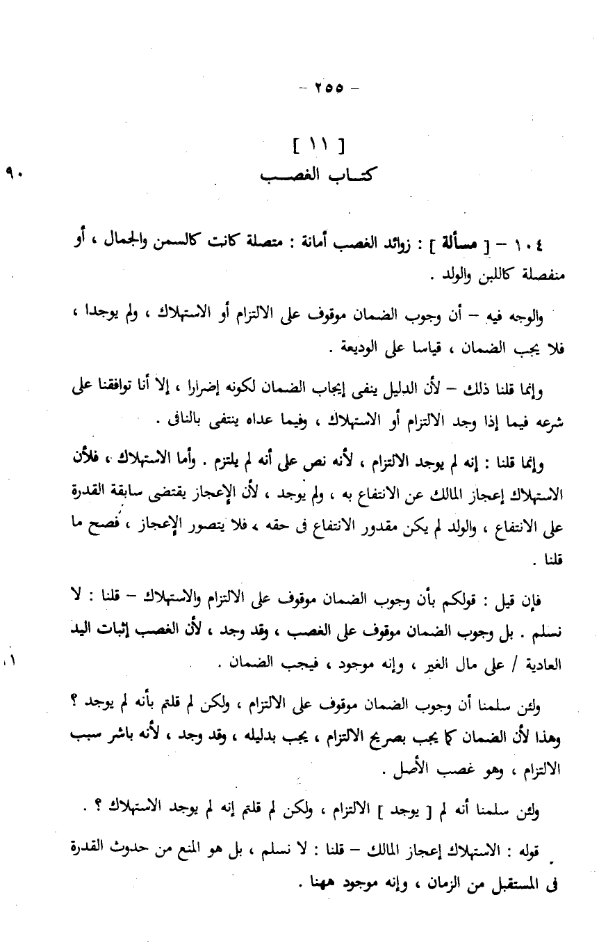 104 - [مسألة]: زوائد الغصب أمانة: متصلة كانت كالسمن والجمال، أو منفصلة كاللبن والولد.