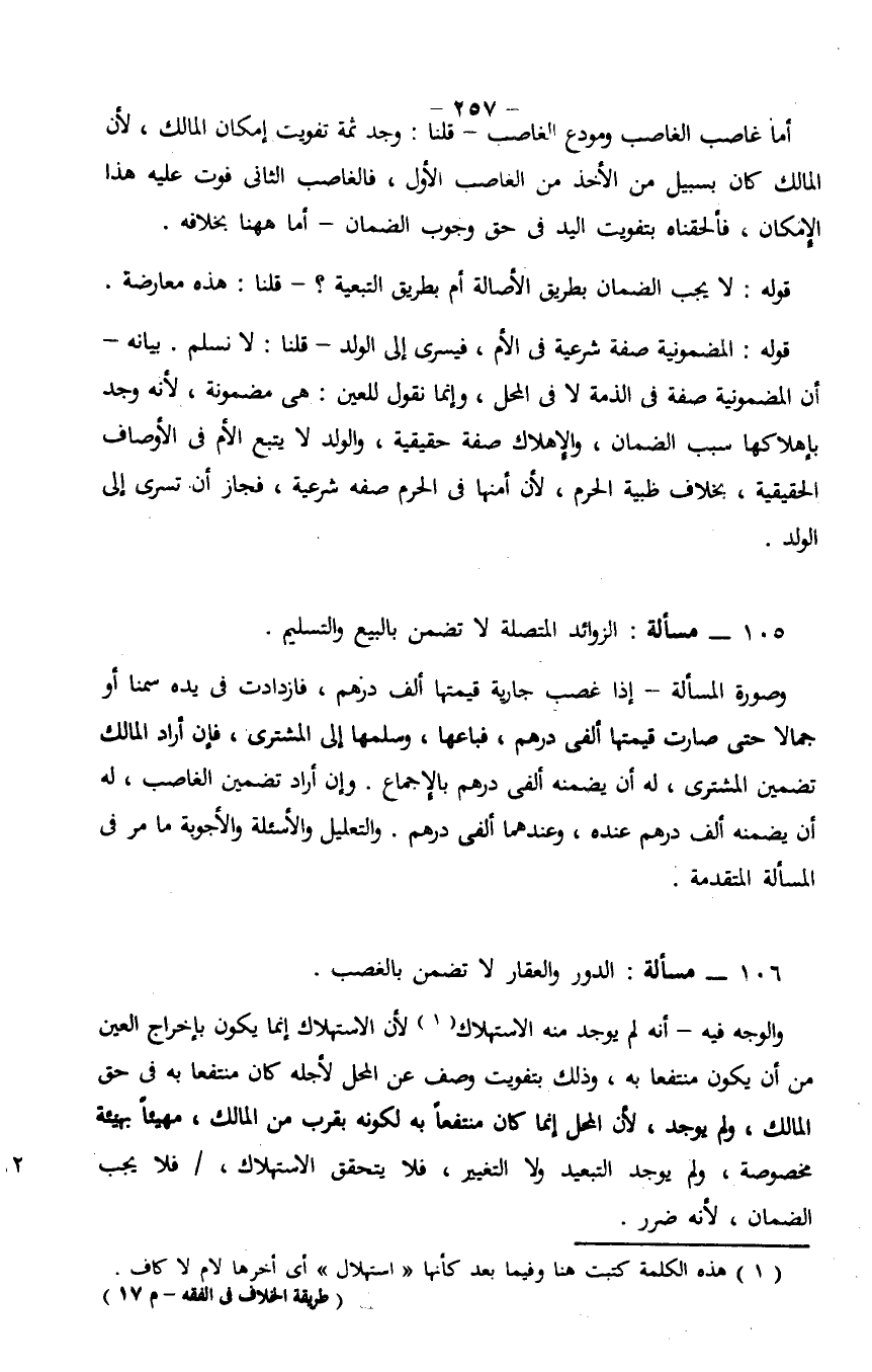 105 - مسألة: الزوائد المتصلة لا تضمن بالبيع والتسليم.