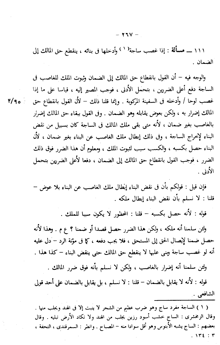 111 - مسألة: إذا غصب ساجة وأدخلها في بنائه، ينقطع حق المالك إلى الضمان.