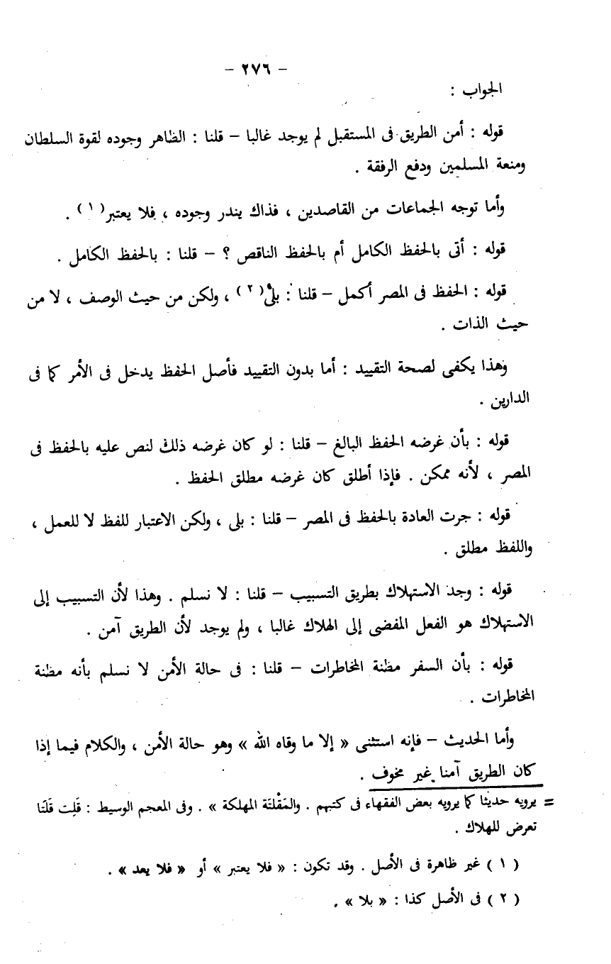 وأما الحديث - فإنه استثنى "إلا ما وقاه الله" وهو حالة الأمن، والكلام فيما إذا كان الطريق آمناً غير مخوف.