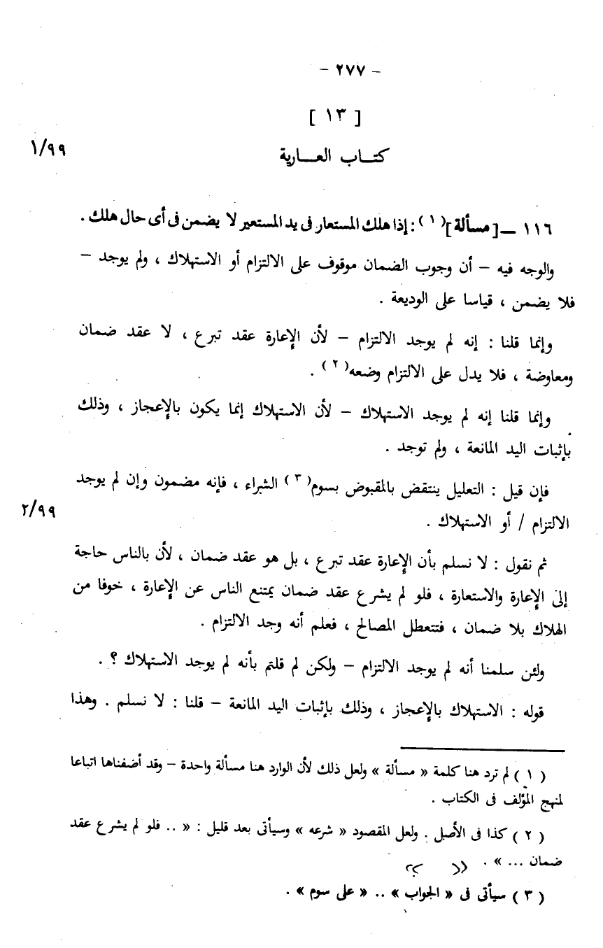 116 - [مسألة]: إذا هلك المستعار لا يضمن في أي حال هلك. والوجه فيه - أن وجوب الضمان موقوف على الالتزام أو الاستهلاك، ولم يوجد - فلا يضمن، قياساً على الوديعة.