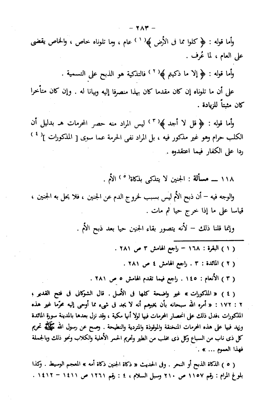 118 - مسألة: الجنين لا يتذكى بذكاة الأم.