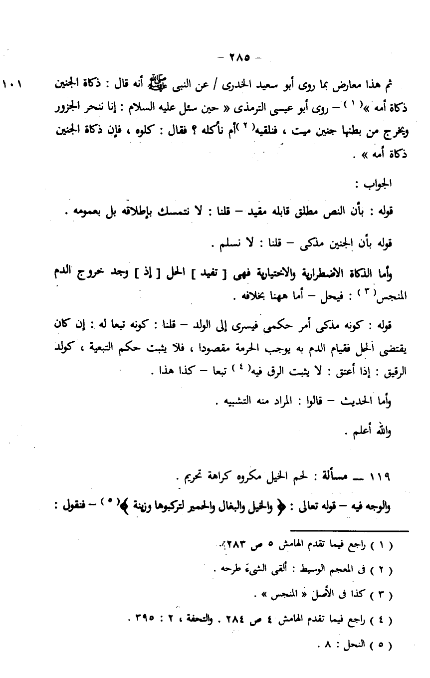 قوله: بأن الجنين مذكي - قلنا: لا نسلم.