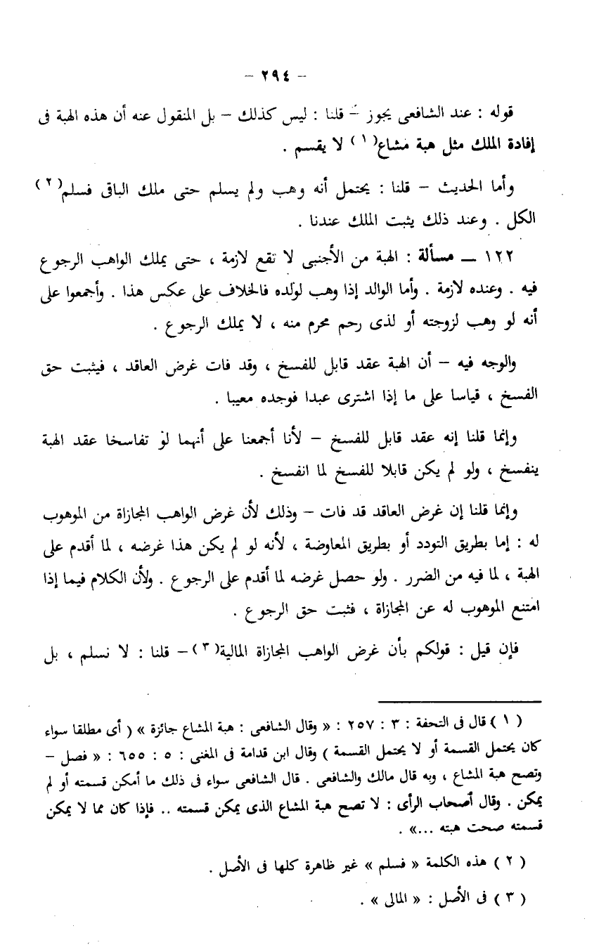 وأما الحديث - قلنا: يحتمل أنه وهب ولم يسلم حتى ملك الباقي فسلم الكل. وعند ذلك يثبت الملك عندنا.