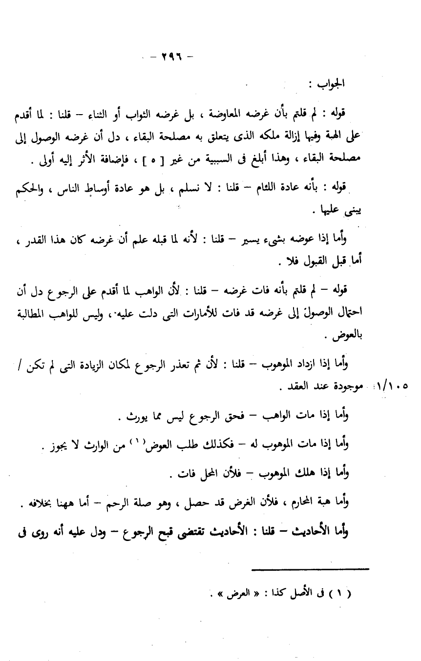 قوله: لم قلتم بأنه غرضه المعاوضة، يل غرضه الثواب أو الثناء - قلنا: لما أقدم على الهبة وفيها إزالة ملكه الذي يتعلق به مصلحة البقاء، دل أن غرضه الوصول إلى مصلحة البقاء، وهذا أبلغ في السببية من غير [هـ]، فإضافة الأثر إليه أولى.