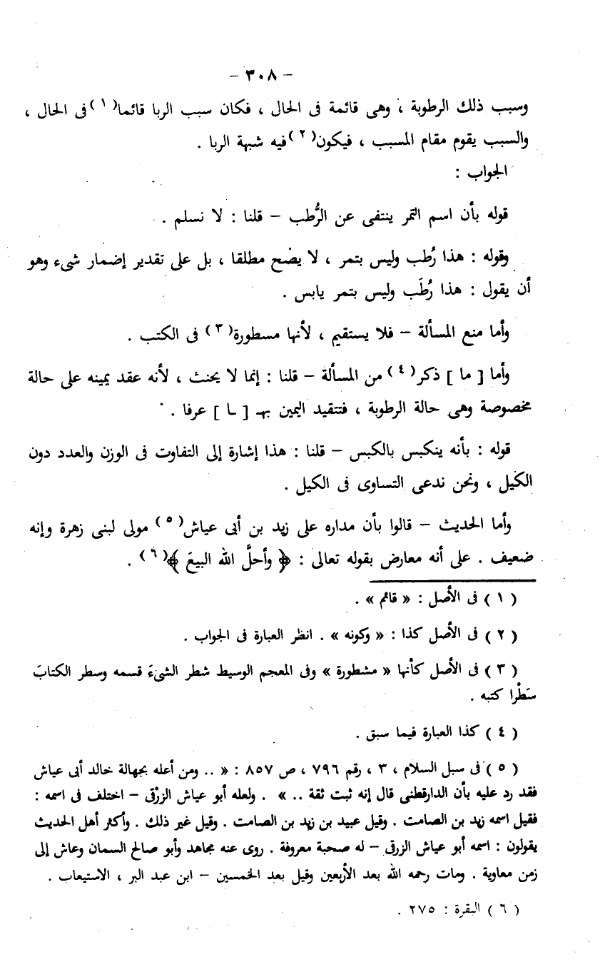 وسبب ذلك الرطوبة، وهي قائمة في الحال، فكان سبب الربا قائماً في الحال، والسبب يقوم مقام المسبب، فيكون فيه شبهة الربا.