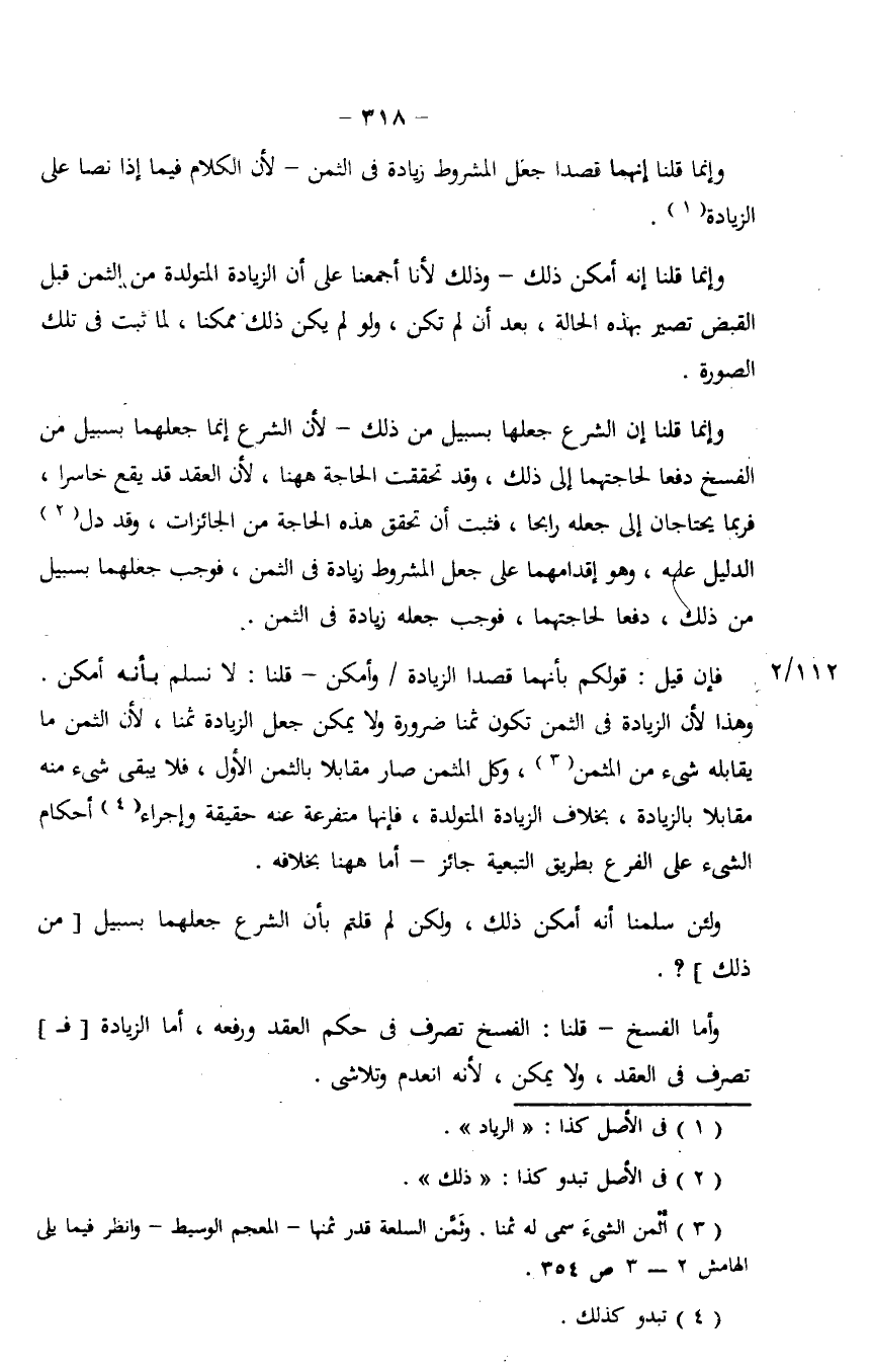 فإن قيل: قولكم بأنهما قصدا الزيادة/ وأمكن - قلنا: لا نسلم بأنه أمكن. وهذا لأن الزيادة في الثمن تكون ثمناً ضرورة ولا يمكن جعل الزيادة ثمناً، لأن الثمن ما يقابله شيء من المثمن، وكل المثمن صار مقابلاً بالثمن الأول، فلا يبقى شيء منه مقابلاً بالزيادة، بخلاف الزيادة المتولدة، فإنها متفرعة عنه حقيقة وإجراء أحكام الشيء على الفرع بطريق التبعية جائز - أما ههنا بخلافه.