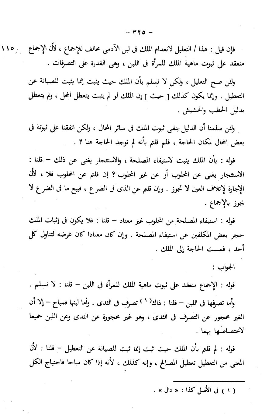 فإن قيل: هذا/ التعليل لانعدام الملك في لبن الآدمي مخالف للإجماع، لأن الإجماع منعقد على ثبوت ماهية الملك للمرأة في اللبن، وهي القدرة على التصرفات.