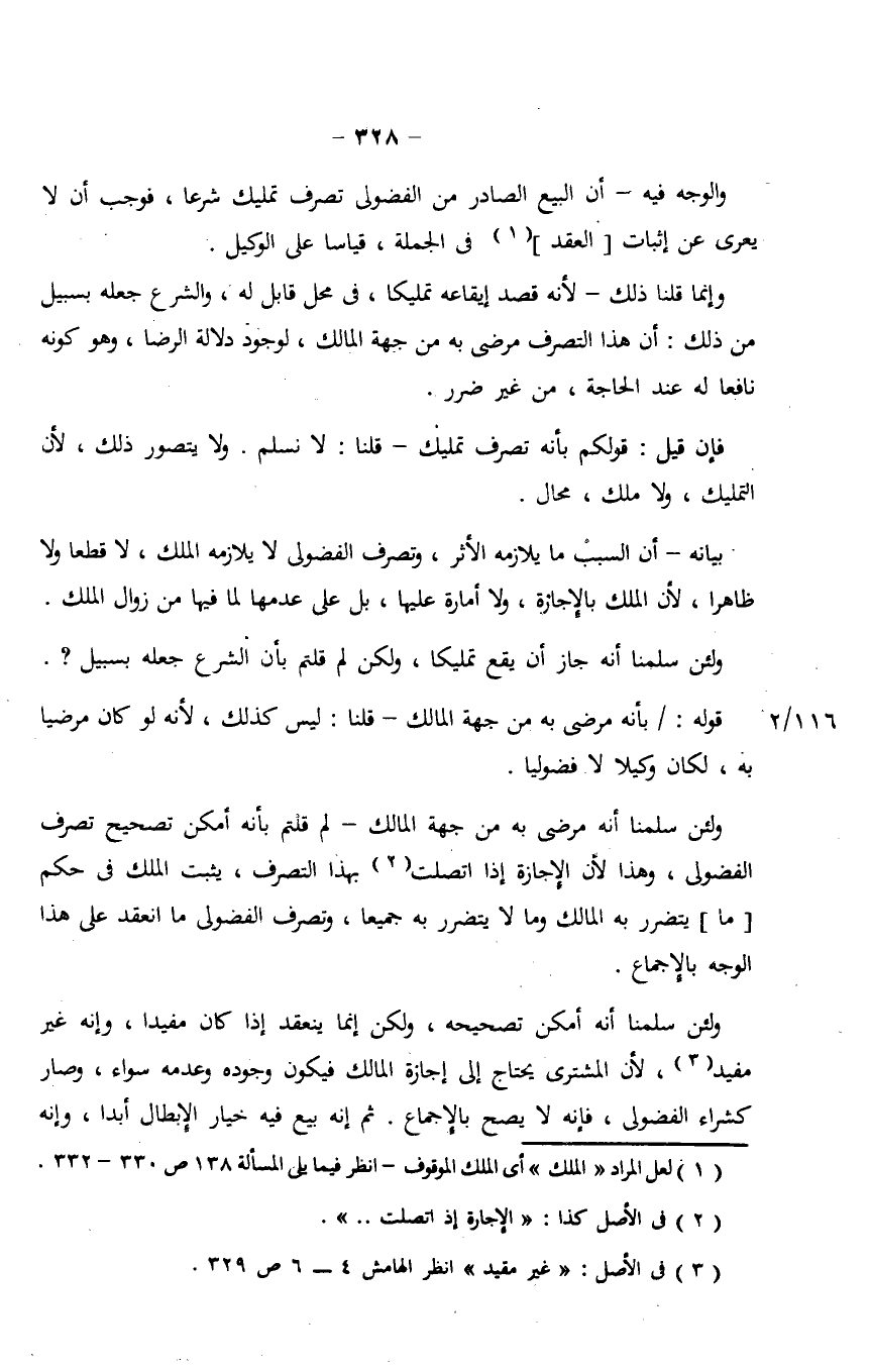 ولئن سلمنا أنه أمكن تصحيحه، ولكن إنما ينعقد إذا كان مفيداً، وإنه غير مفيد، لأن المشتري يحتاج إلى إجازة المالك فيكون وجوده وعدمه سواء، وصاء كشراء الفضولي، فإنه لا يصح بالإجماع. ثم إنه بيع فيه خيار الإبطال أبداً، وإنه