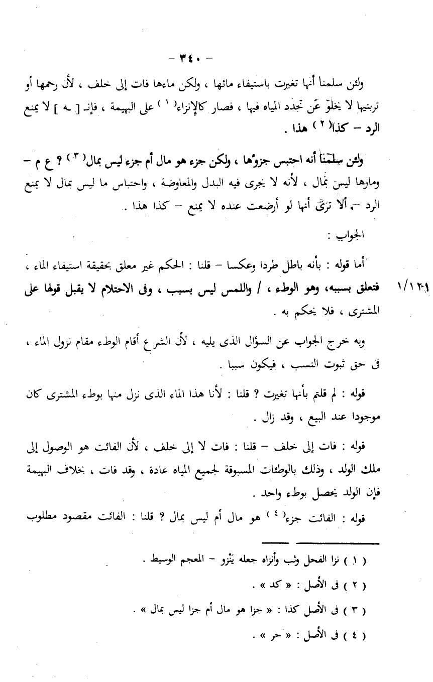 قوله: الفائت جزء هو مال أم ليس مال؟ قلنا: الفائت مقصود مطلوب