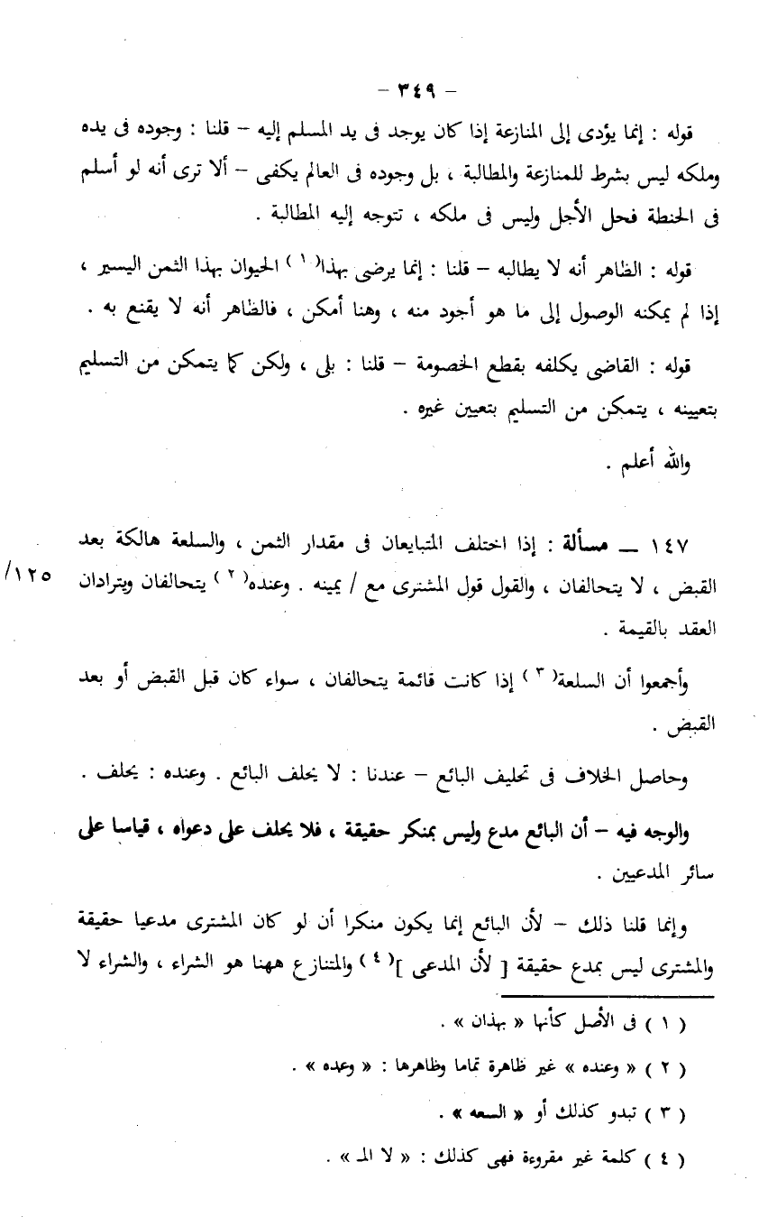 قوله: إنما يؤدي إلى المنازعة إذا كان يوجد في يد المسلم إليه - قلنا: وجوده في يده وملكه ليس بشرط للمنازعة والمطالبة، بل وجوده في العالم يكفي - ألا ترى أنه لو أسلم في الحنطة فحل الأجل وليس في ملكه، تتوجه إليه المطالبة.