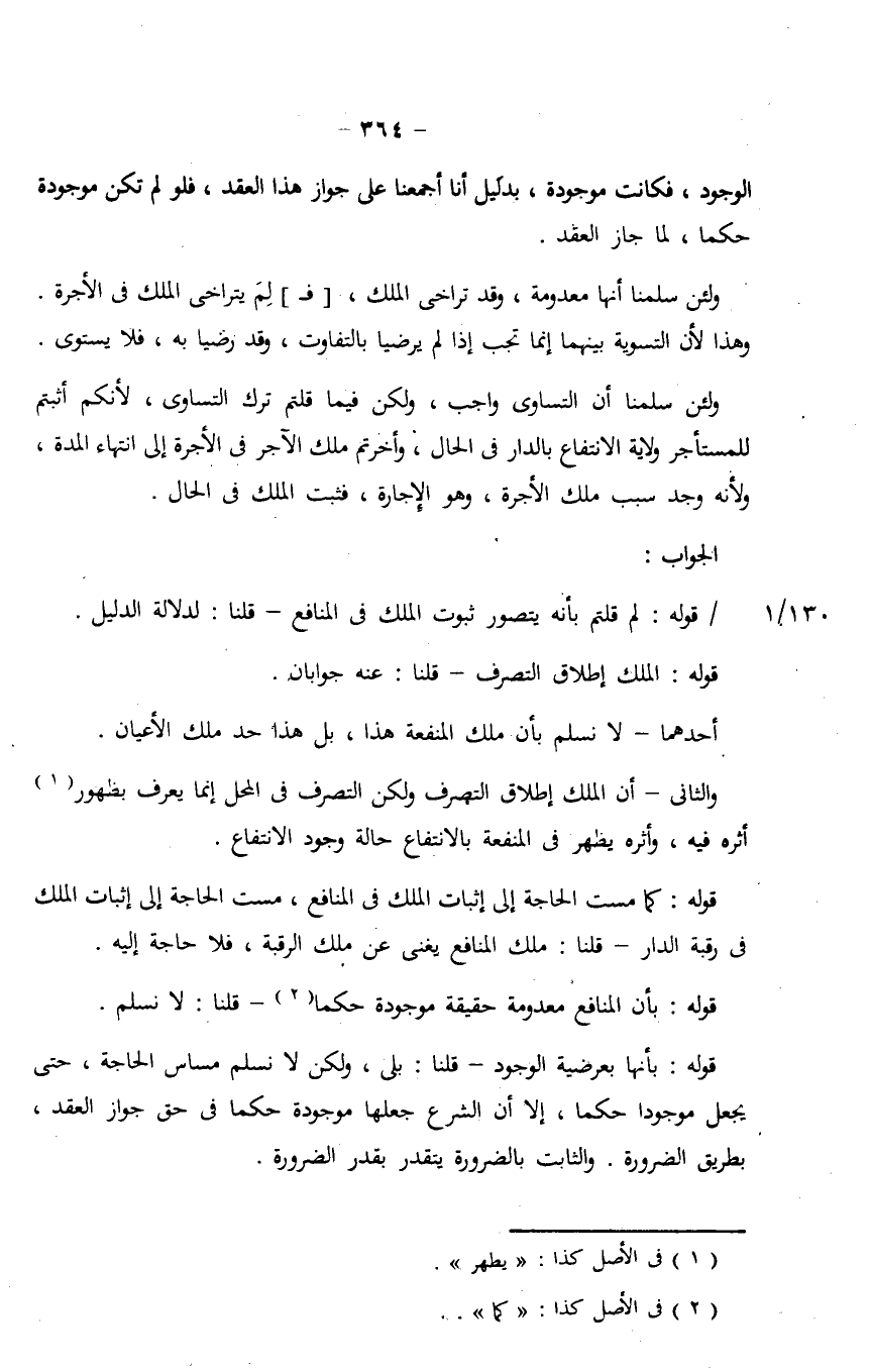 قوله: بأن المنافع معدومة حقيقة موجودة حكماً - قلنا: لا نسلم.