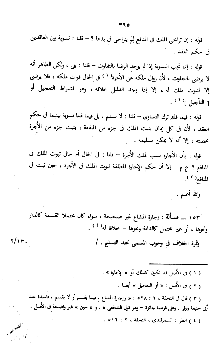 قوله: إنما تجب التسوية إذا لم يوجد الرضا بالتفاوت - قلنا: بلى، ولكن الظاهر أنه لا يرضى بالتفاوت، لأن زوال ملكه عن الأجرة في الحال فوات ملكه، فلا يرضى إلا لثبوت ملك له، إلا إذا وجد الدليل بخلافه، وهو اشتراط التعجيل أو [التأجيل].