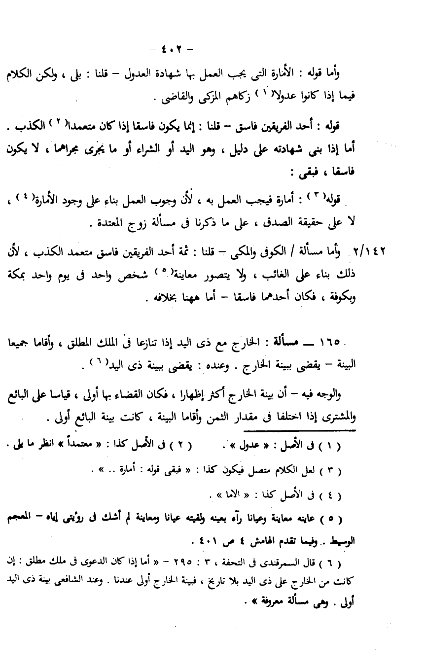 قوله: أحد الفريقين فاسق - قلنا: إنما يكون فاسقاً إذا كان معتمداً الكذب. أما إذا بنى شهادته على دليل، وهو اليد أو الشراء أو ما يجري مجراهما، لا يكون فاسقاً، فبقى: