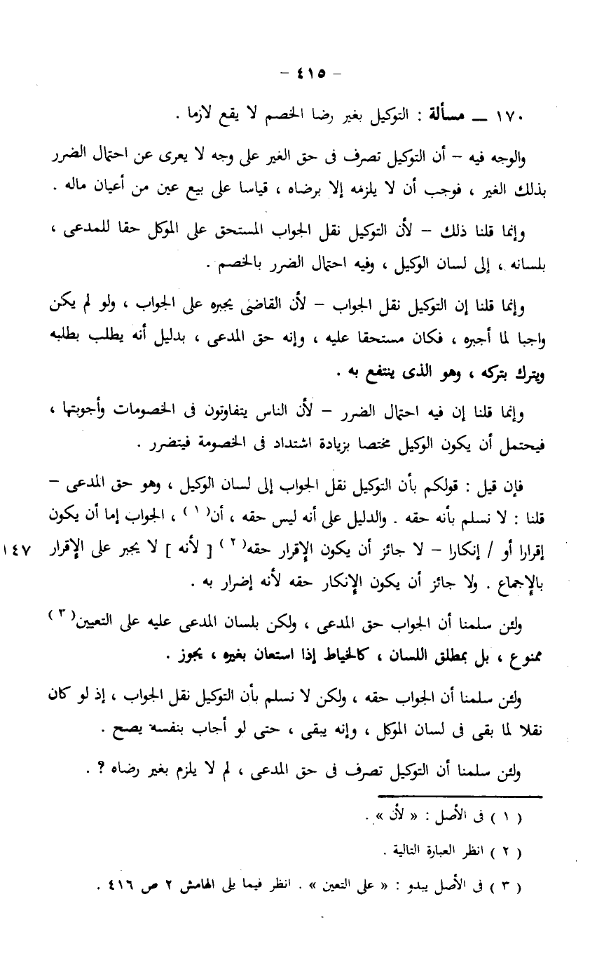 170 - مسألة: التوكيل بغير رضا الخصم لا يقع لازما.