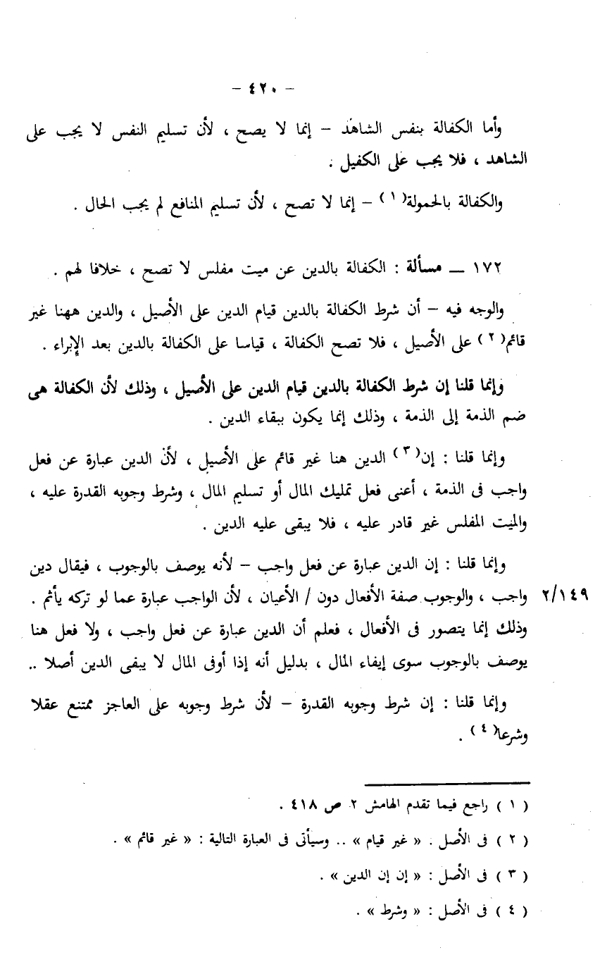 172 - مسألة: الكفالة بالدين عن ميت مفلس لا تصح، خلافا لهم.