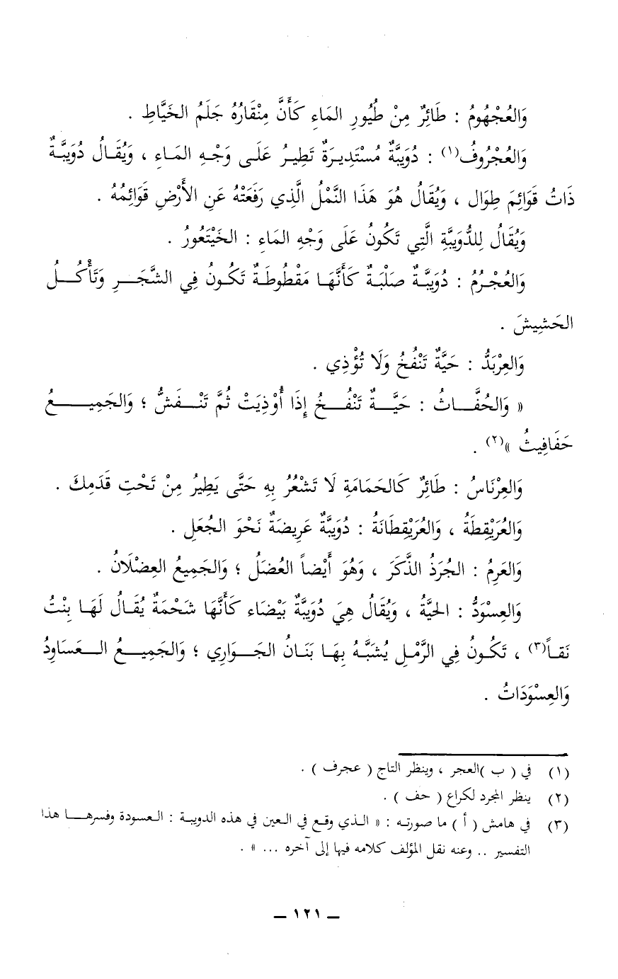 والعُجْرُوفُ: دويبة مستديرة تطير على وجه الماء، ويقال دويبة ذات قوائم طوال، ويقال هو هذا النَّمل الذي رفعته عن الأرض قوائمه.